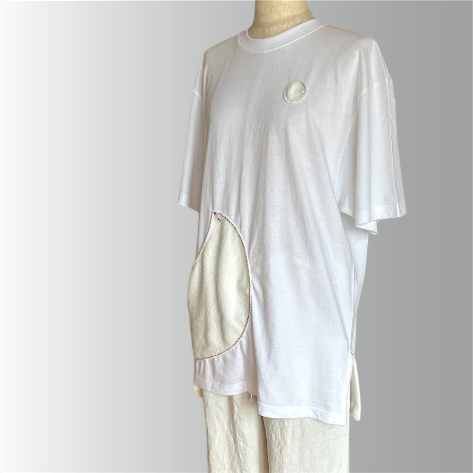 T-shirt:cotton100% ポケット刺繍糸:wool100% カシメ:iron size:LL 身丈77、身幅58、肩幅54、袖丈24 (cm)