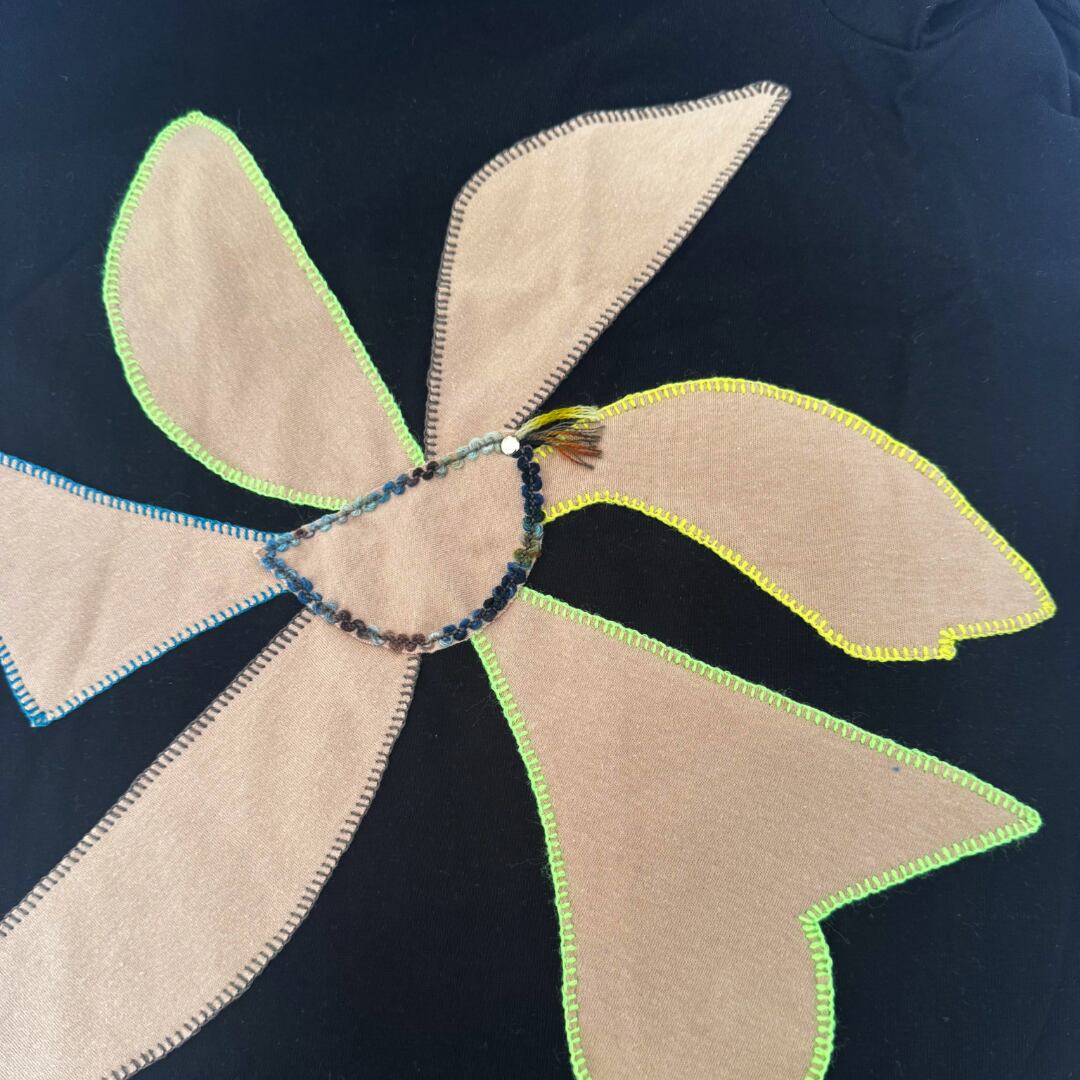 T-shirt:cotton100% 刺繍糸:Acryl、wool カシメ:iron size:M 身丈69、身巾52、肩巾46、袖丈20 (cm)
