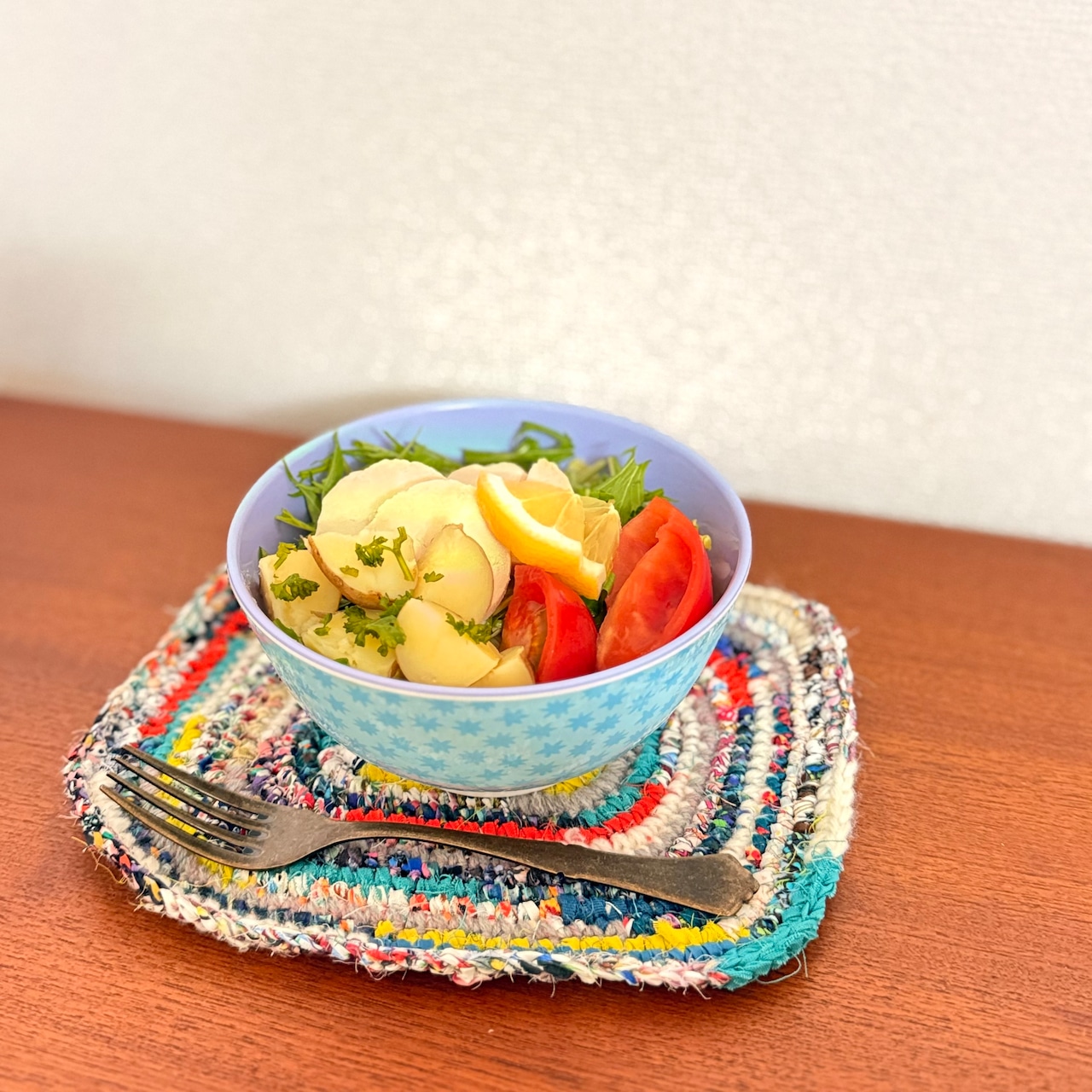 *布と毛糸を編み合わせた製品です