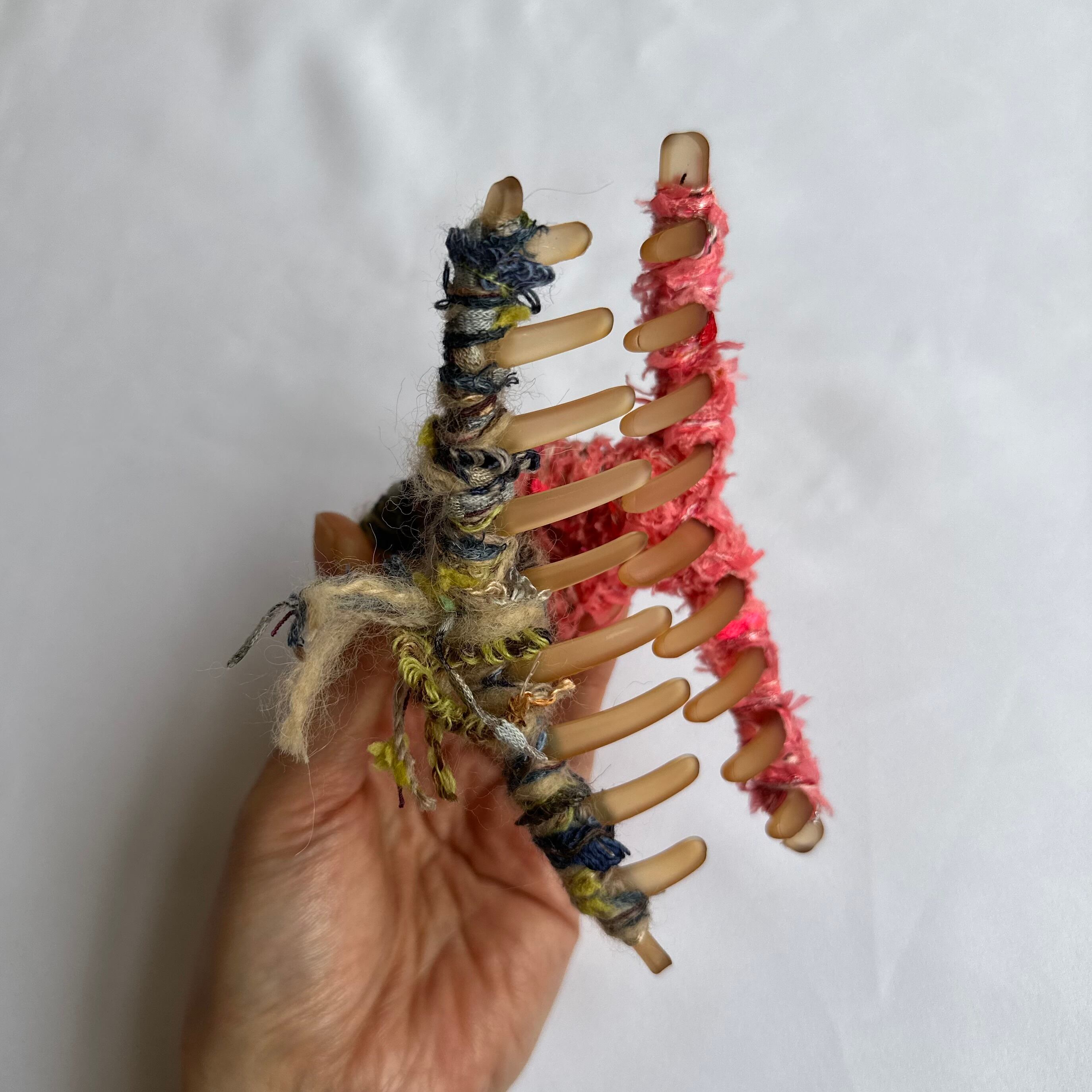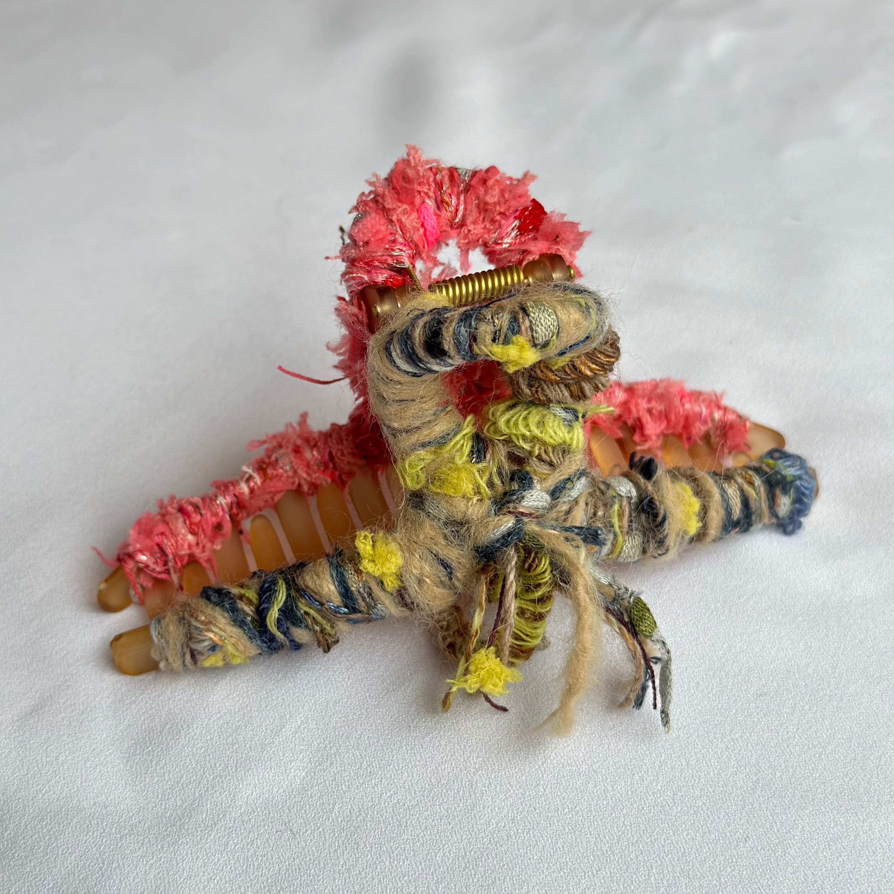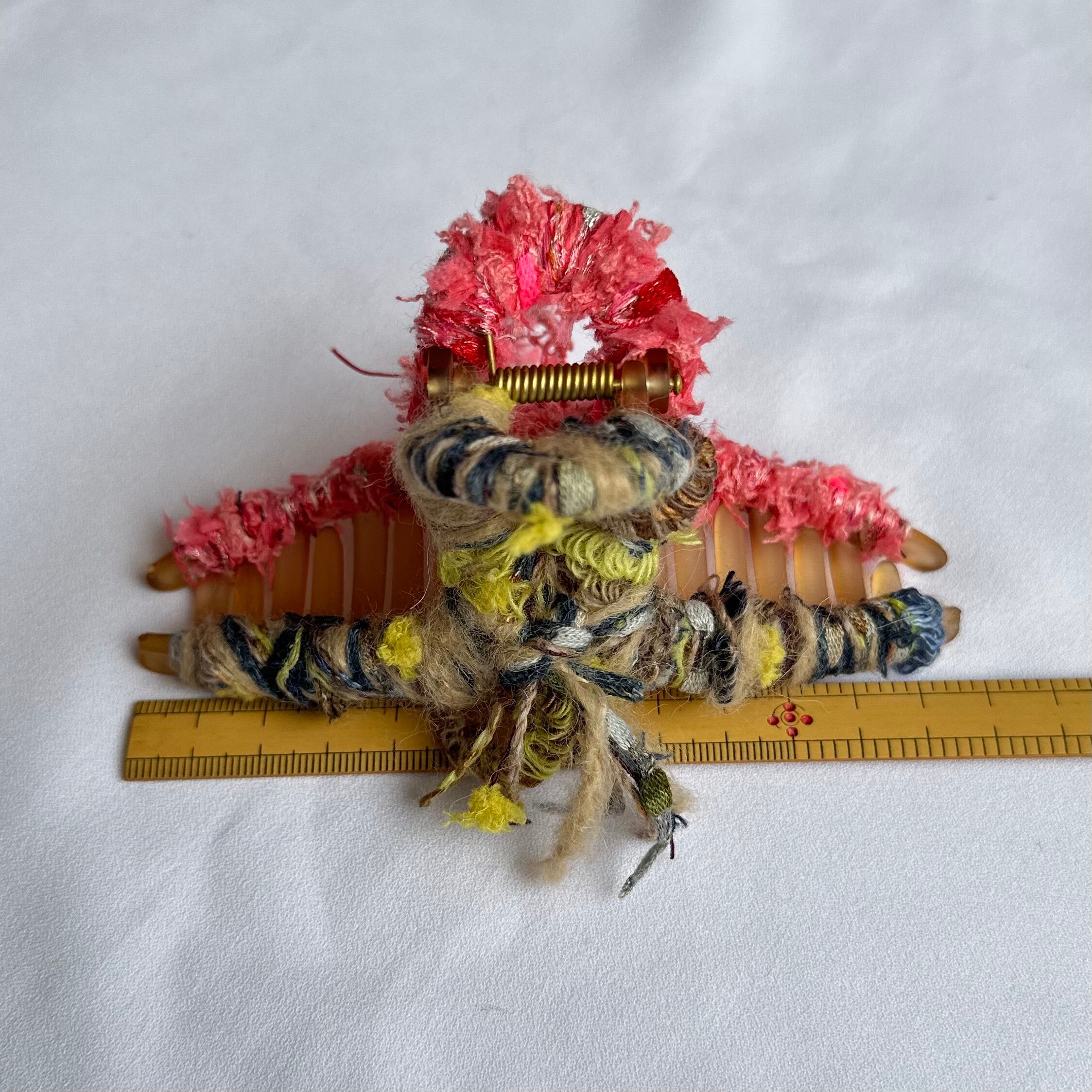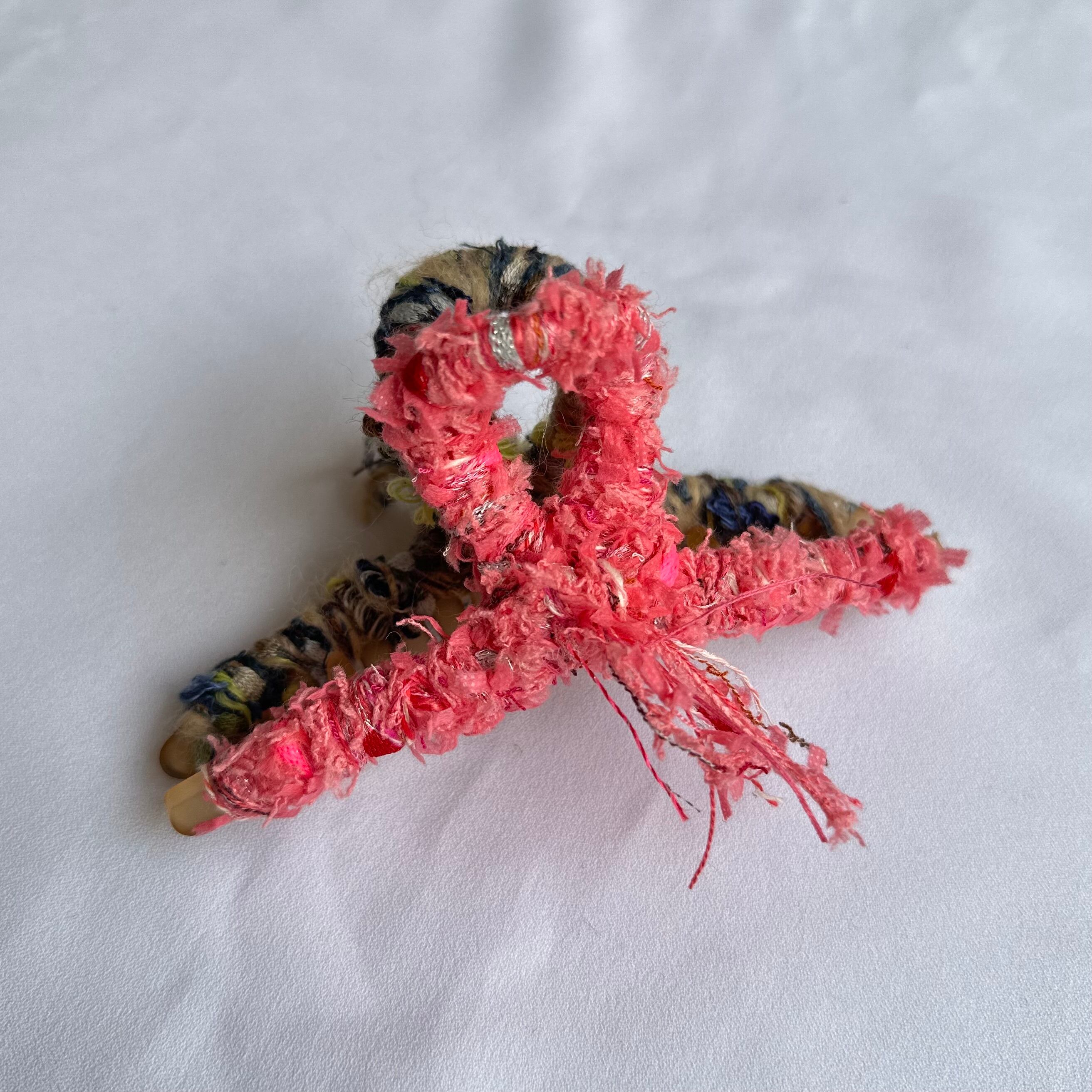 両サイドで異なる毛糸を使用したヘアアクセサリー