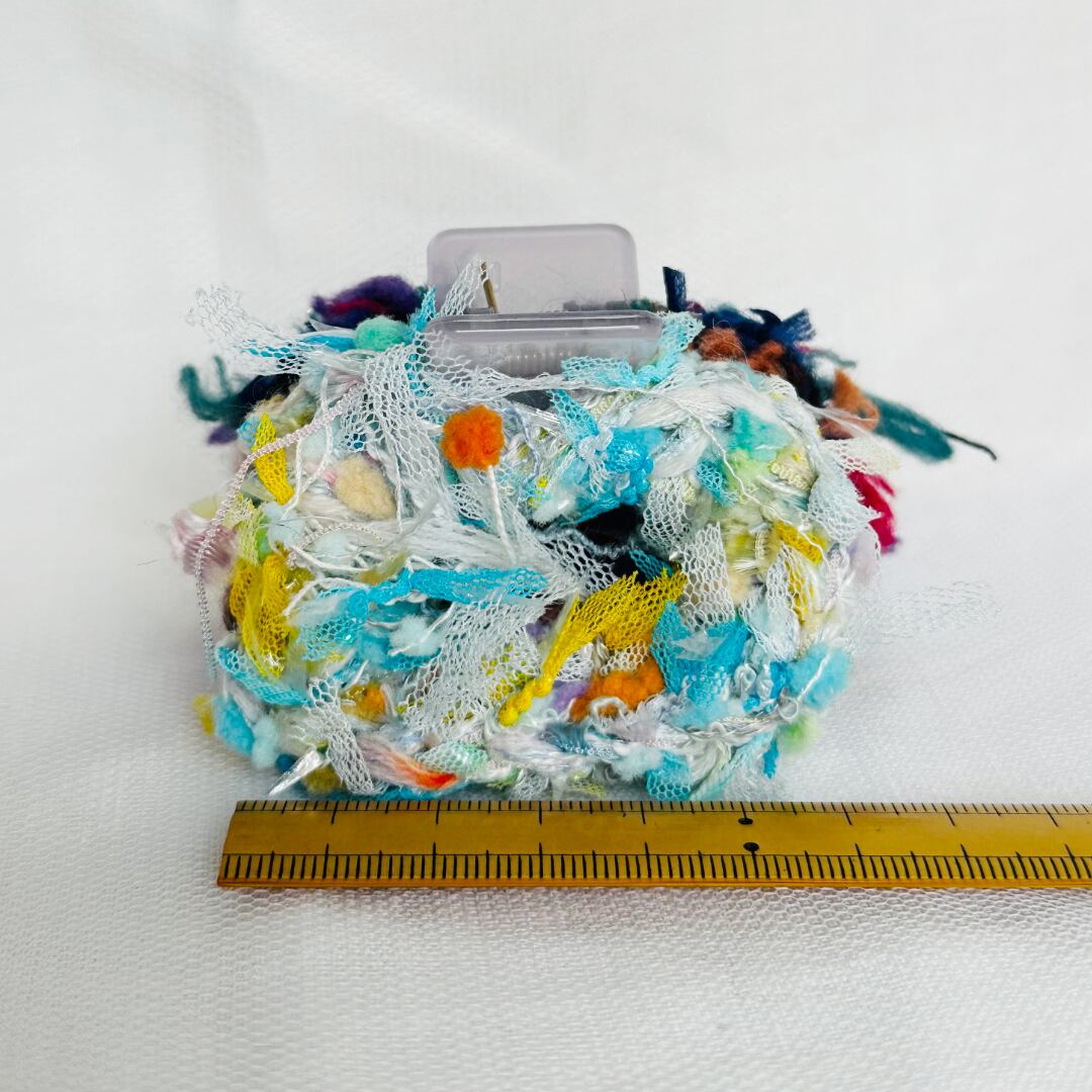 両サイドで異なる毛糸を使用したヘアアクセサリー